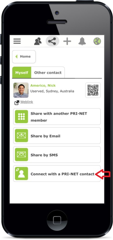 - Connect with a PRI-NET contact > search for new existing PRI-NET contacts to connect with you